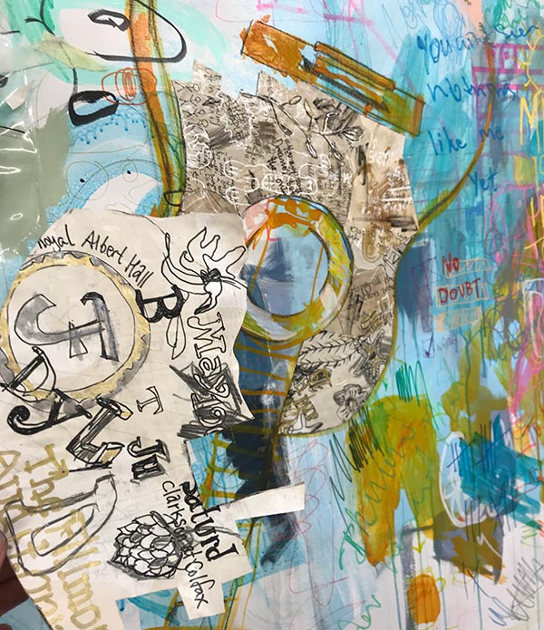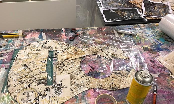 Guitarformen blev limet fast med gel medium.
