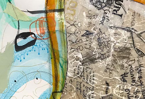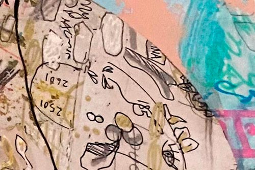 [BILLEDE – nærbillede af gel medium på papir og lærred]